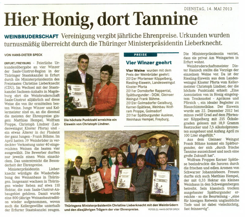 EDELTROPFEN Der Schloss-Brennmeister der Neuenburg ist vom Land nun für einen RotenMuskateller aus seinem Weinhaus geehrt worden.
